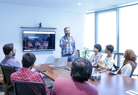 The department is currently housed in the south wing of the Tabba Academic Center at the main campus of IBA. We have state-of-the-art facilities including classrooms, labs, and seminar lounges. Our computational infrastructure includes modern scientific computing server hardware-based and distributed memory multiprocessing in combination with computational and visualization software libraries for numeric and symbolic computing.